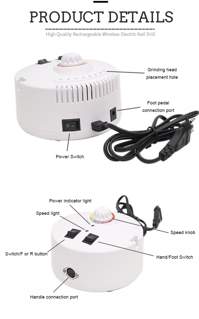 Bộ máy khoan móng tay cầm tay chạy điện với động cơ mạnh mẽ 65w 35000rpm