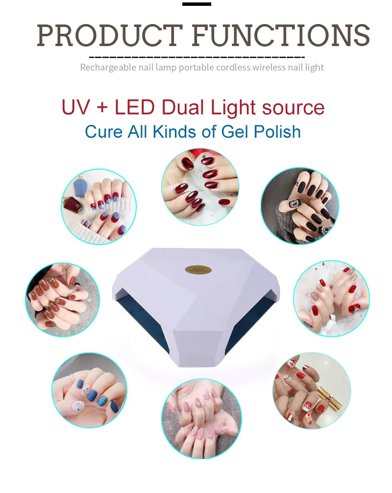 Sản phẩm đảm bảo keo khô đều mà không bị co ngót. Nguồn ánh sáng kép của nó cung cấp khả năng sưởi ấm nhẹ nhàng để tránh đổi màu tay và mỏi mắt, phù hợp cho cả tay và chân, mang lại kết quả làm khô nhanh đáng kể.
