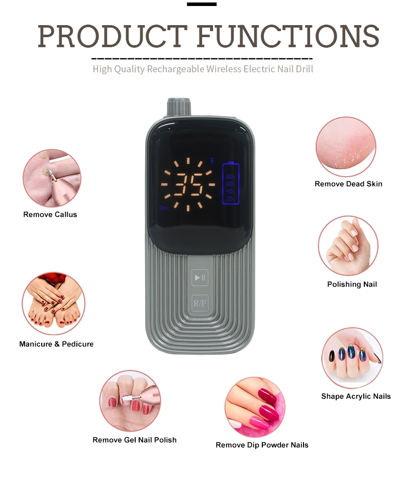Bộ máy khoan móng tay cầm tay chạy điện với động cơ mạnh mẽ 65w 35000rpm