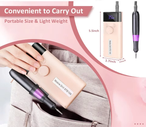 Thiết kế màn hình của máy đánh bóng móng tay điện 30.000 vòng / phút này có công tắc bật/tắt và xoay tiến/lùi để kích hoạt tổng cộng bằng một nút bấm, ổ cắm sạc nhanh ở phía dưới, ổ cắm máy khoan có thể thay thế ở phía trên và tốc độ điều chỉnh ba vị trí để đáp ứng nhiều nhu cầu khác nhau.