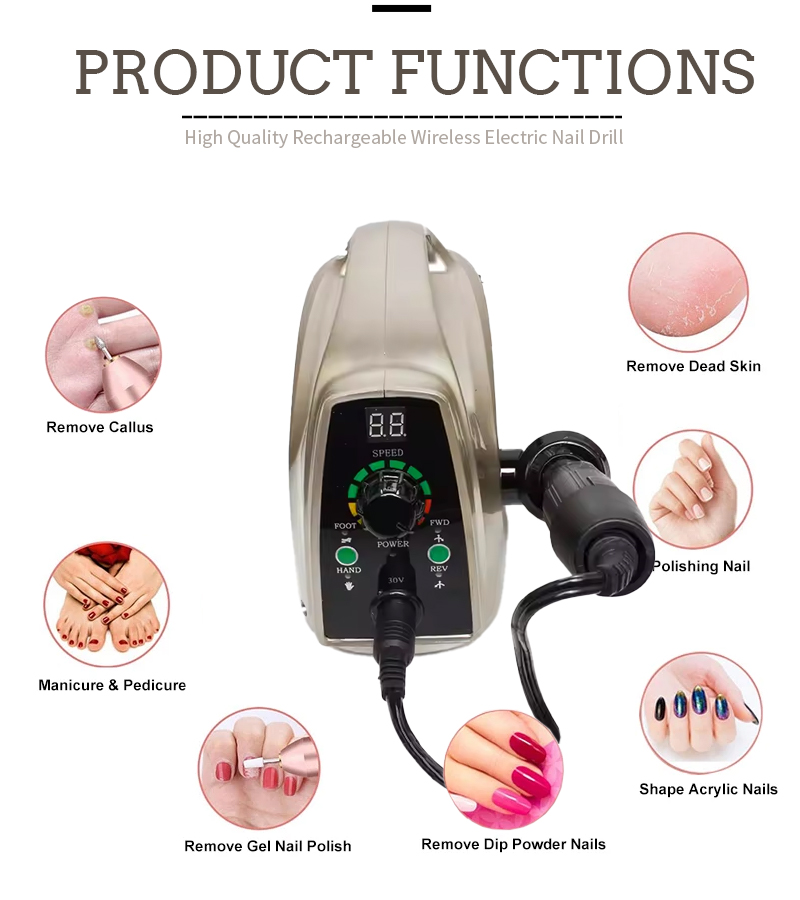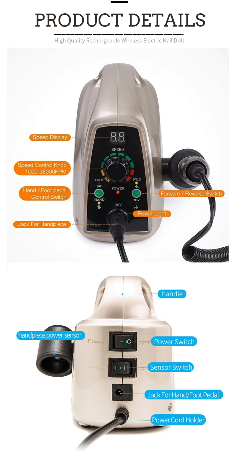 Bộ máy khoan móng tay cầm tay chạy điện với động cơ mạnh mẽ 65w 35000rpm