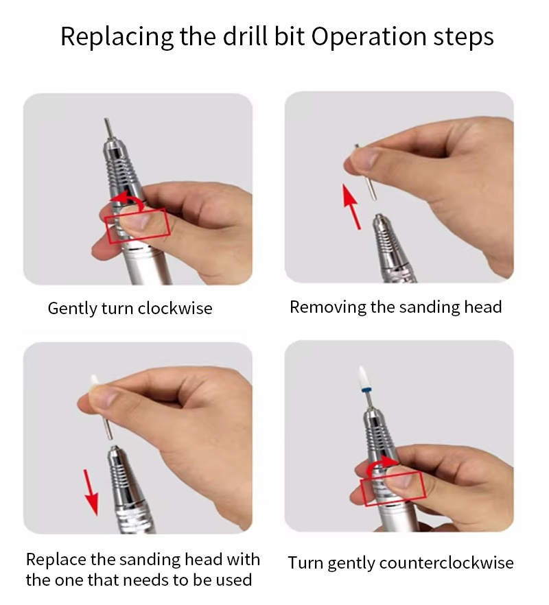 Phương pháp vận hành máy khoan thay thế máy khoan móng tay và máy đánh bóng cầm tay này, nghĩa là cắm và rút ra, dễ dàng và thuận tiện, có thể sử dụng thay thế sau khi hoàn thành.