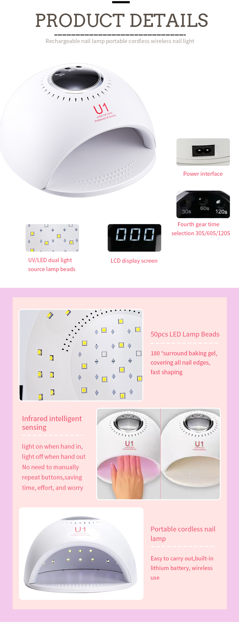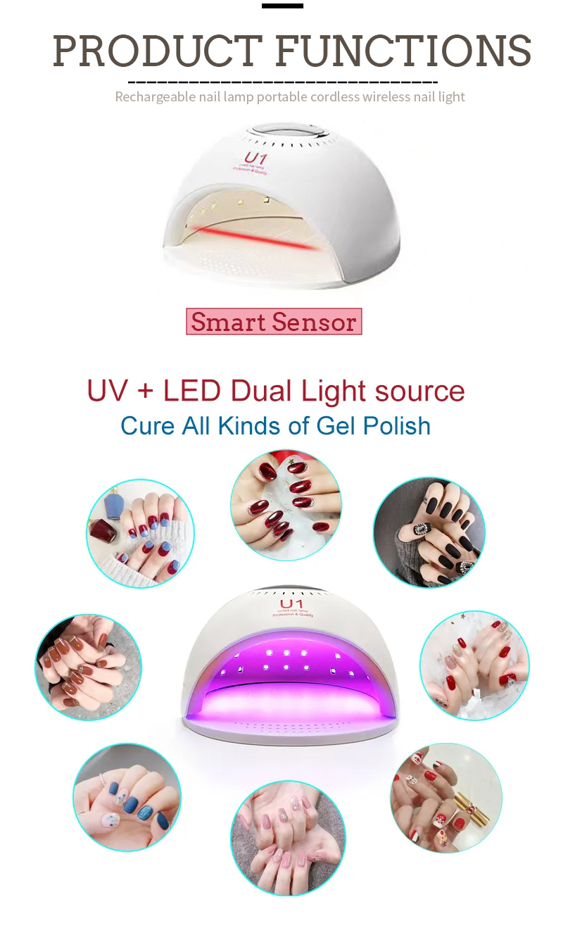 Sản phẩm đảm bảo keo khô đều mà không bị co ngót. Nguồn ánh sáng kép của nó cung cấp khả năng sưởi ấm nhẹ nhàng để tránh đổi màu tay và mỏi mắt, phù hợp cho cả tay và chân, mang lại kết quả làm khô nhanh đáng kể.