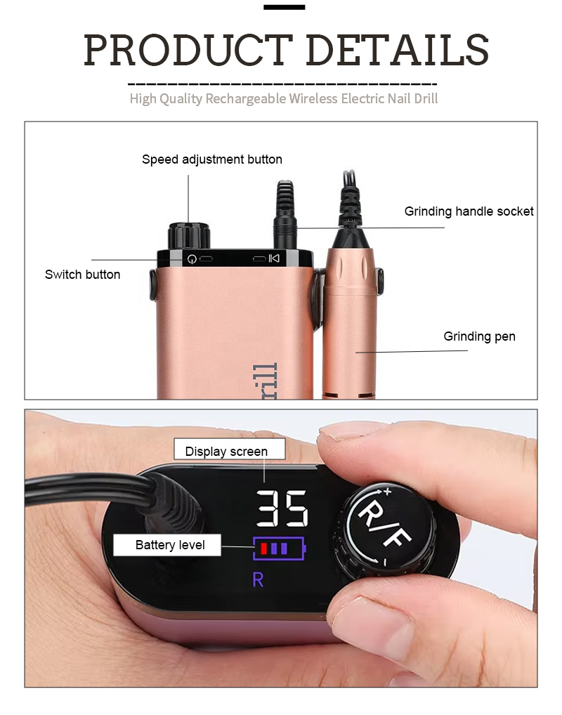 Bộ máy khoan móng tay cầm tay chạy điện với động cơ mạnh mẽ 65w 35000rpm