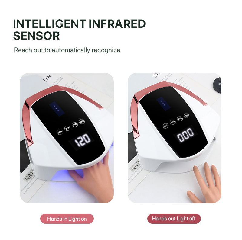 Sản phẩm đảm bảo keo khô đều mà không bị co ngót. Nguồn ánh sáng kép của nó cung cấp khả năng sưởi ấm nhẹ nhàng để tránh đổi màu tay và mỏi mắt, phù hợp cho cả tay và chân, mang lại kết quả làm khô nhanh đáng kể.