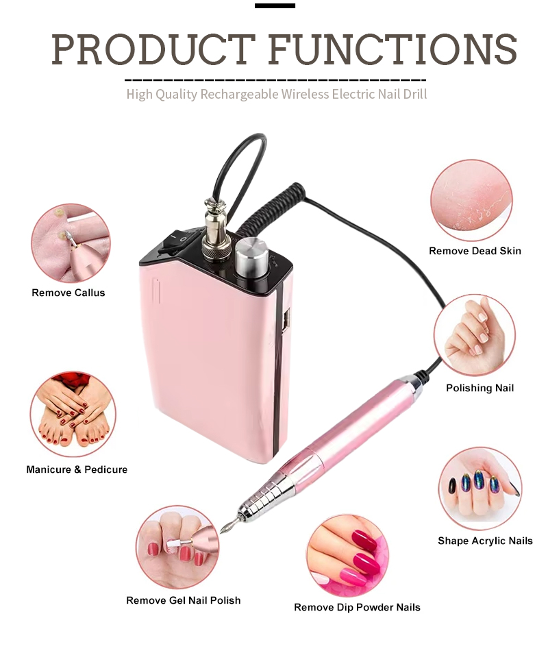 Bộ máy khoan móng tay cầm tay chạy điện với động cơ mạnh mẽ 65w 35000rpm
