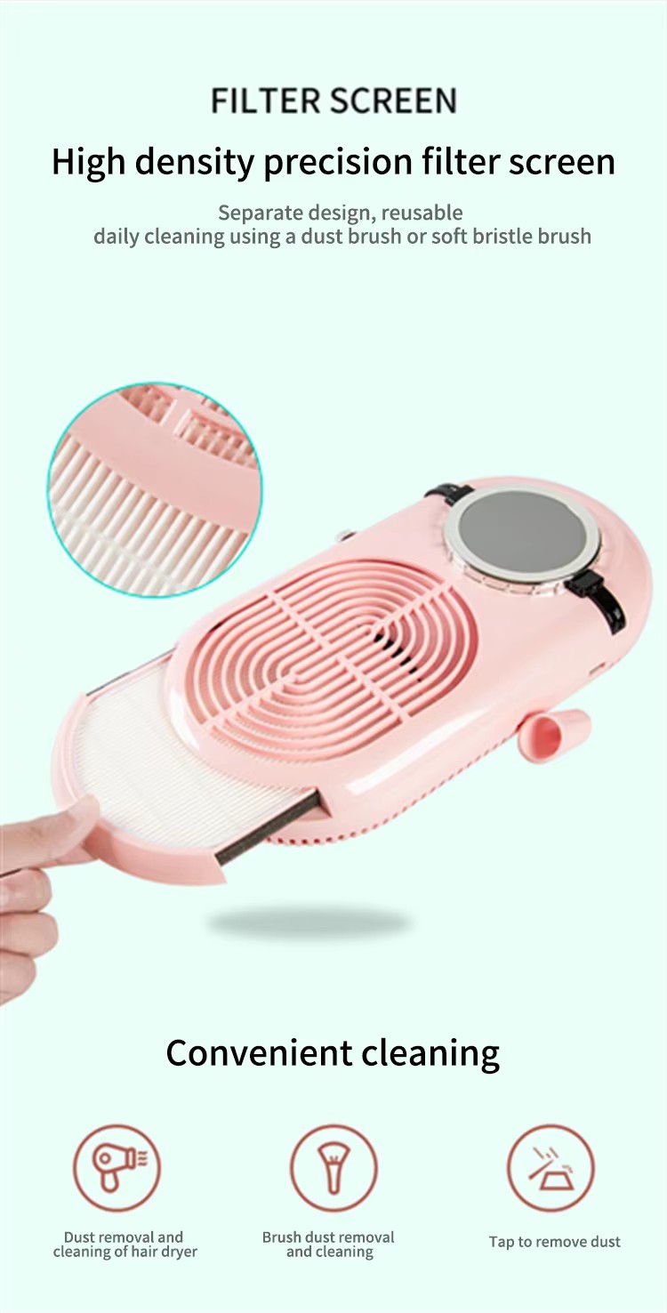 Sản phẩm hấp phụ mạnh mẽ các mảnh vụn móng không bị rò rỉ bụi, giữ cho mặt bàn sạch sẽ và ngăn nắp, hút bụi nhanh không rò rỉ bụi công suất cao hiệu quả hơn.