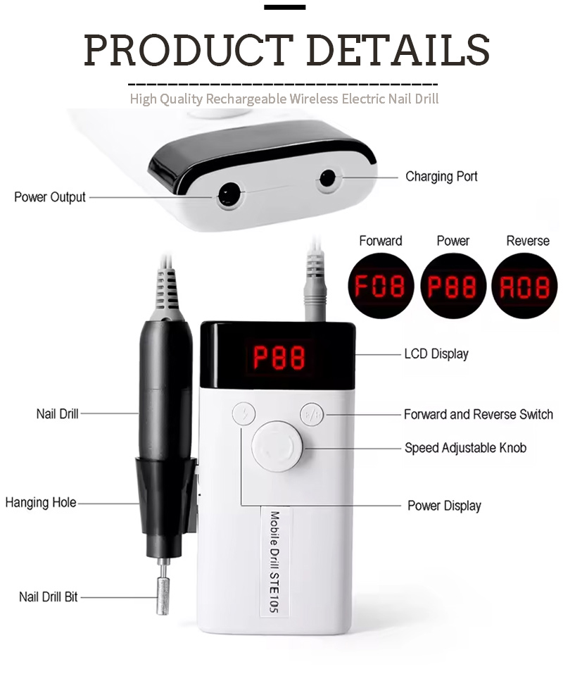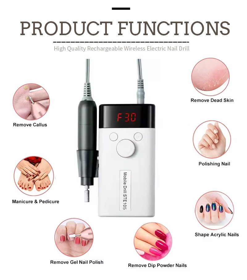 Tính năng sản phẩm và ứng dụng của Tệp móng điện sơn móng tay 30000 RPM tốc độ cao 105