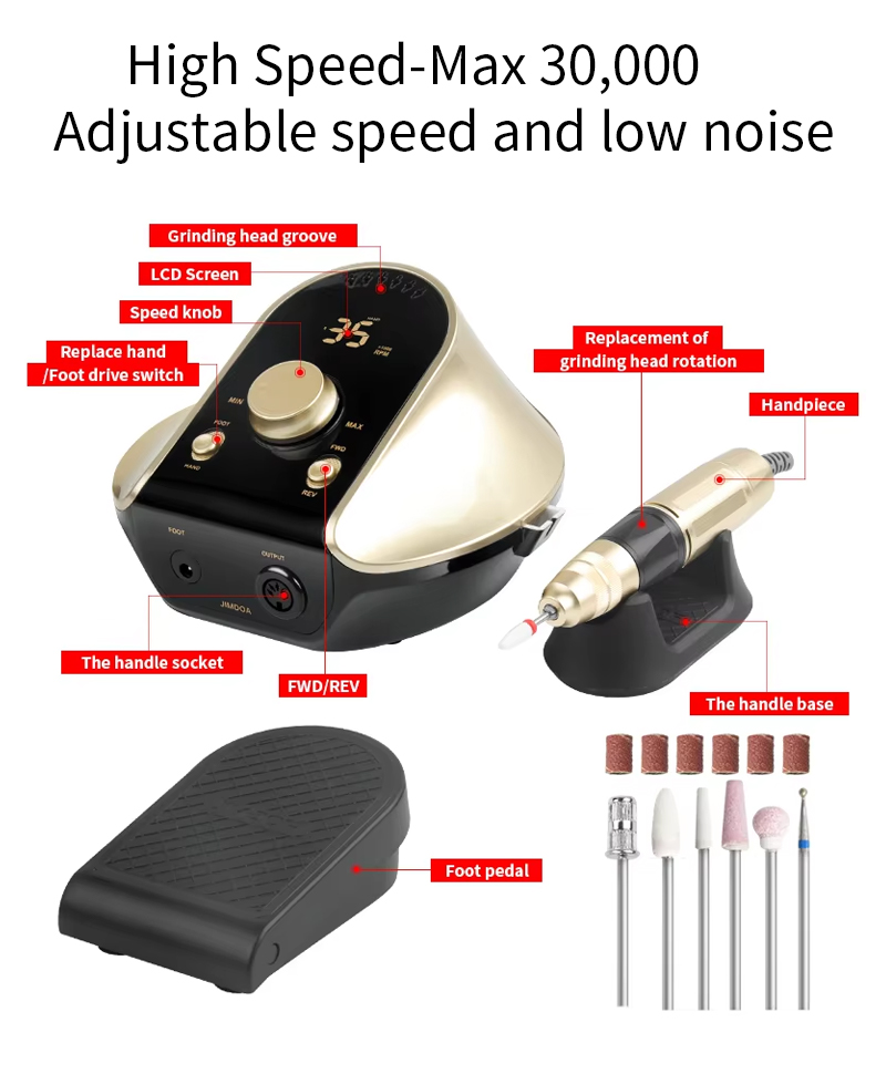 Bộ máy khoan móng tay dùng điện để tẩy sơn gel 65w 35000rpm