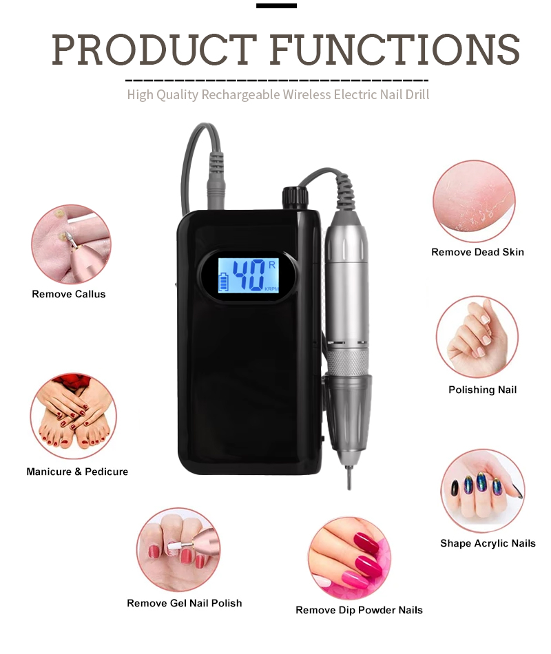 Tính năng sản phẩm và ứng dụng của Dũa móng tay điện tốc độ cao 40.000 vòng/phút K91 để loại bỏ sơn móng tay