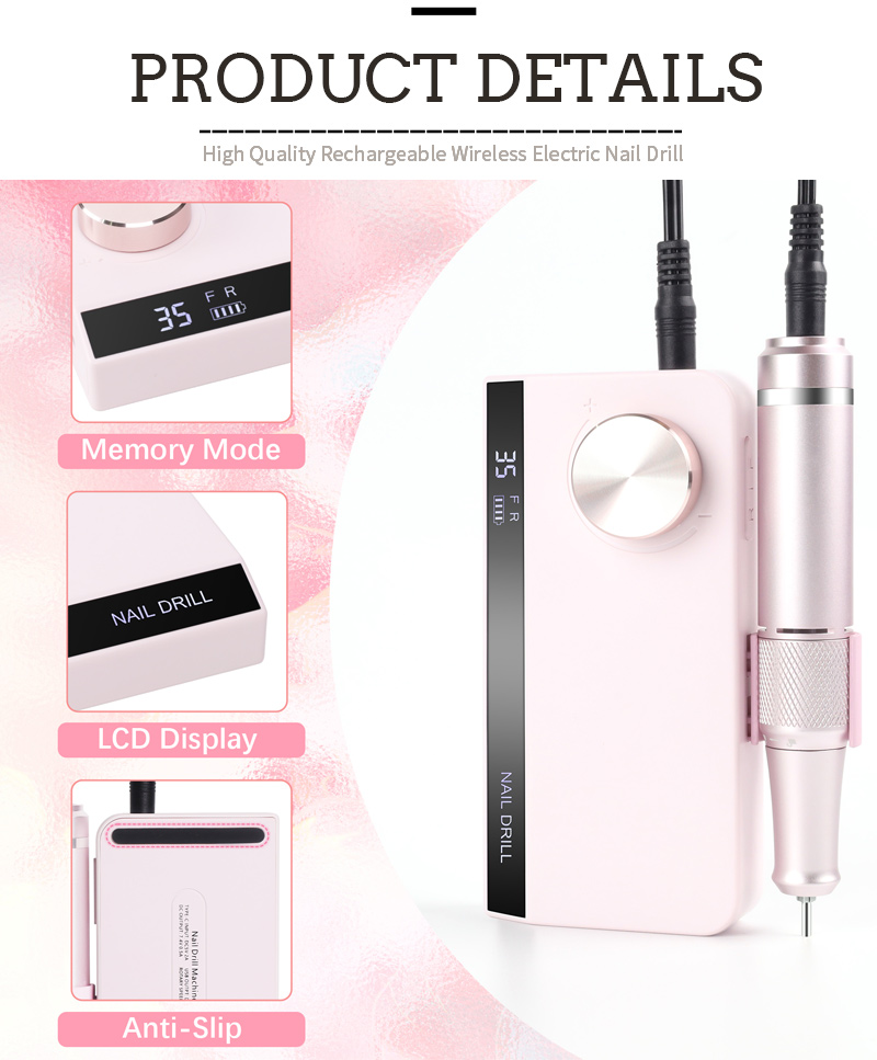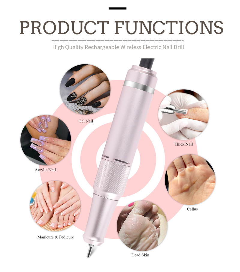 Bộ mũi khoan móng tay có thể sạc lại với tay khoan mạnh mẽ 45w 35000rpm