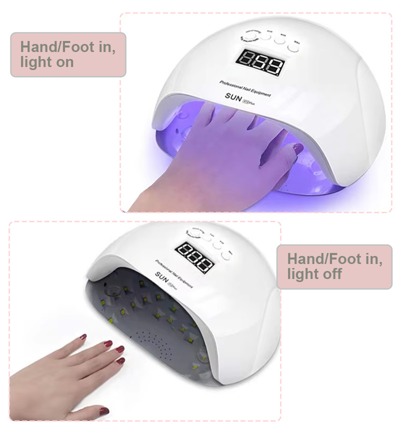 Sản phẩm đảm bảo keo khô đều mà không bị co ngót. Nguồn ánh sáng kép của nó cung cấp khả năng sưởi ấm nhẹ nhàng để tránh đổi màu tay và mỏi mắt, phù hợp cho cả tay và chân, mang lại kết quả làm khô nhanh đáng kể.