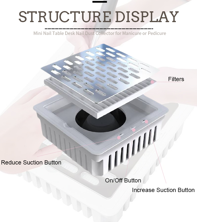 Sản phẩm có khả năng hấp phụ mạnh các mảnh vụn móng tay, không rò rỉ bụi, giữ cho mặt bàn sạch sẽ và gọn gàng, hút bụi nhanh không rò rỉ bụi, công suất cao hiệu quả hơn.