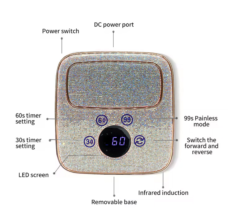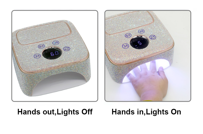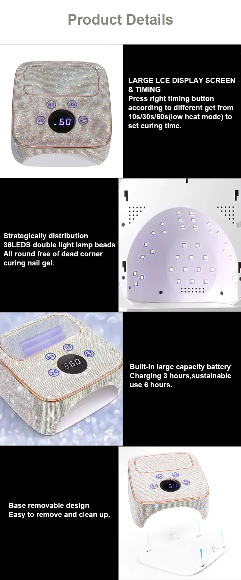 Sản phẩm đảm bảo keo khô đều mà không bị co ngót. Nguồn ánh sáng kép của nó cung cấp khả năng sưởi ấm nhẹ nhàng để tránh đổi màu tay và mỏi mắt, phù hợp cho cả tay và chân, mang lại kết quả làm khô nhanh đáng kể.
