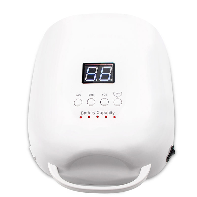 Đèn LED máy sấy móng tay có thể sạc lại 86w Thiết kế hiển thị bề mặt của sản phẩm có thể bảo vệ được, có bốn nút cài đặt thời gian 10s/30s/60s/99s, 10s áp dụng cho sơn móng tay thông thường, các thời gian khác có thể được đặt theo các mẫu sơn móng tay khác nhau của riêng họ . Có đèn hiển thị thay đổi mức sử dụng điện, đèn đỏ là đã hết điện, đèn xanh là đủ điện. Có một màn hình LCD lớn có thể hiển thị thời gian bảo dưỡng và chế độ chức năng.