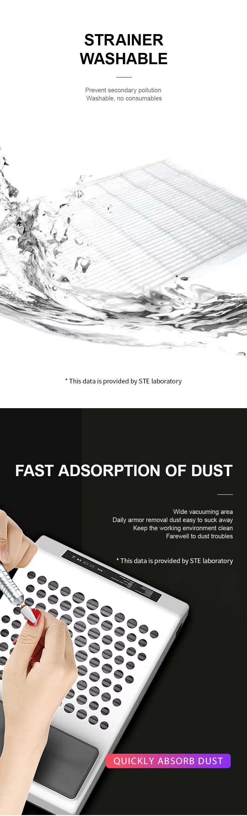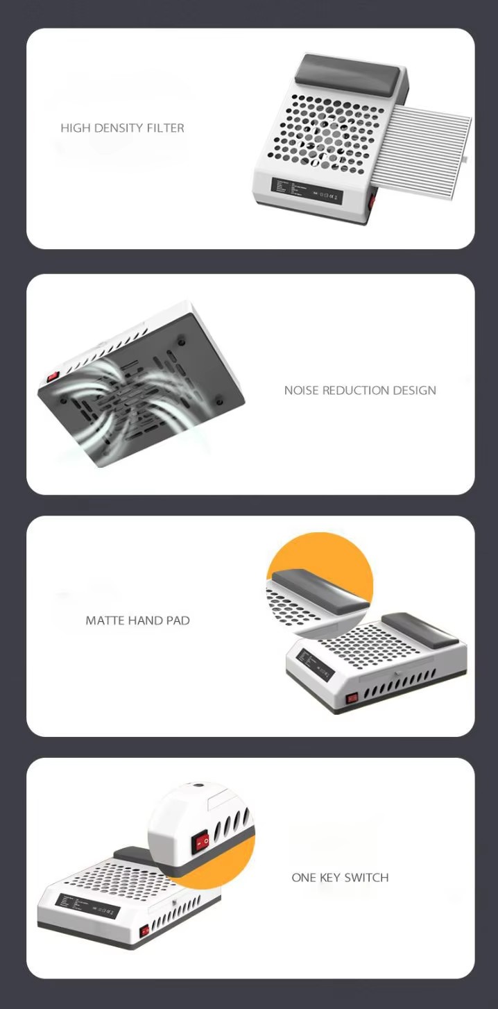 Sản phẩm hấp phụ mạnh mẽ các mảnh vụn móng không bị rò rỉ bụi, giữ cho mặt bàn sạch sẽ và ngăn nắp, hút bụi nhanh không rò rỉ bụi công suất cao hiệu quả hơn.