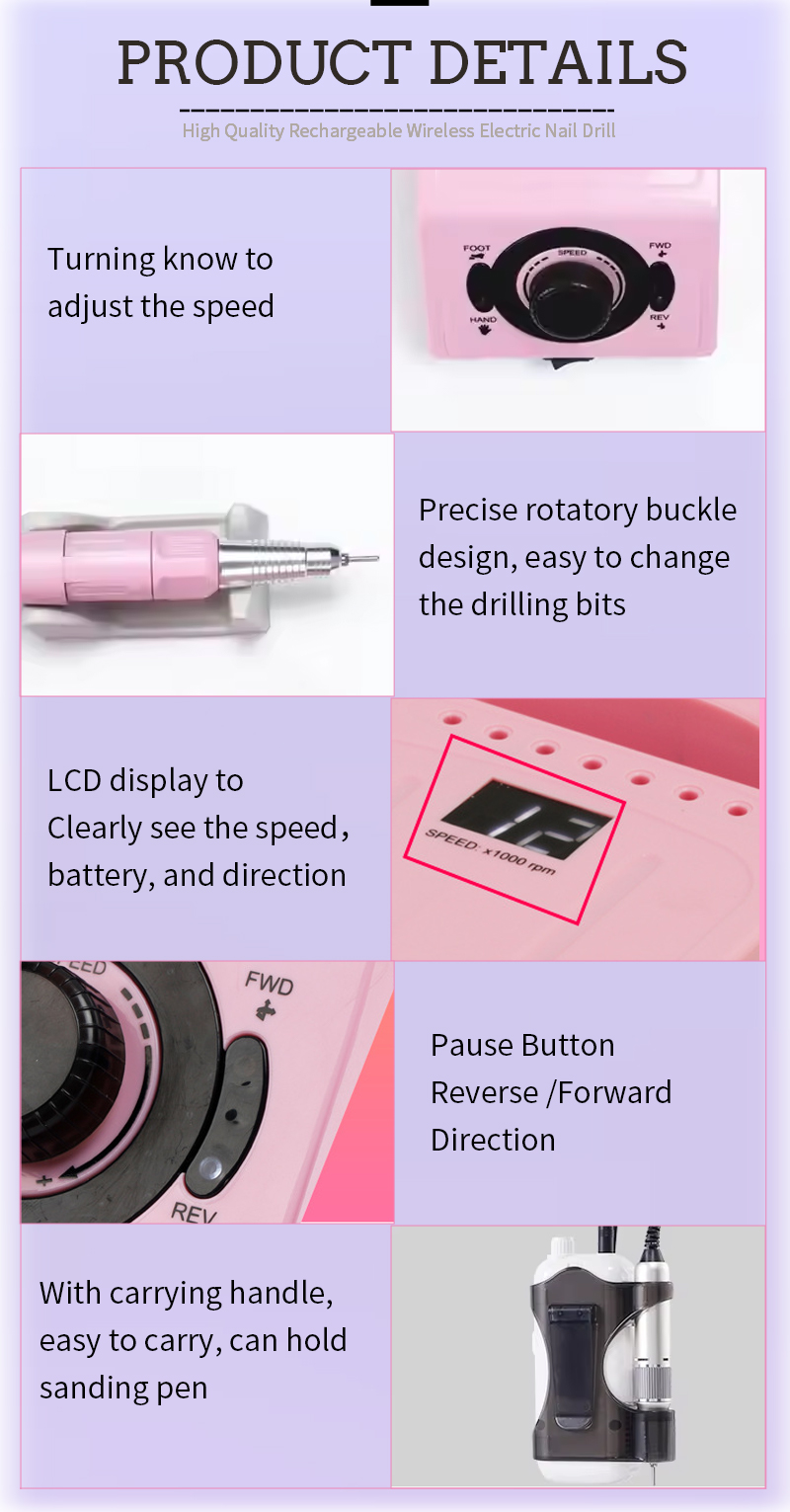 Bộ máy khoan móng tay cầm tay chạy điện với động cơ mạnh mẽ 65w 35000rpm