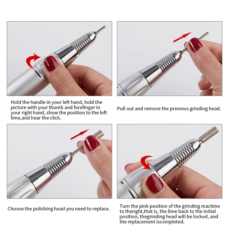 Máy khoan móng tay điện không dây này có phương thức vận hành máy khoan thay thế 35.000 vòng / phút, nghĩa là cắm và rút ra, dễ dàng và thuận tiện, có thể sử dụng thay thế sau khi hoàn thành.